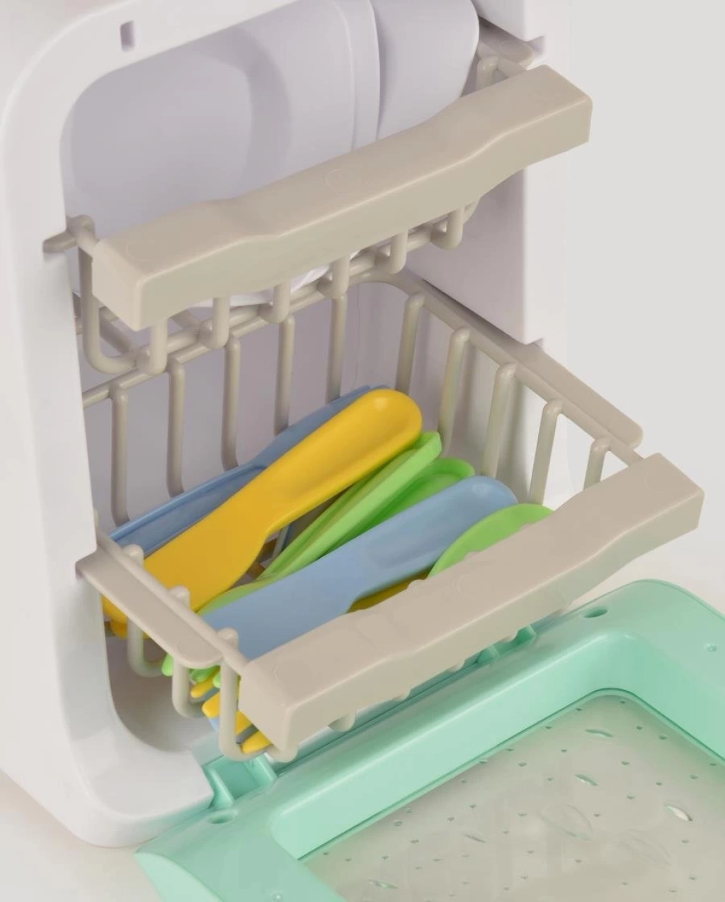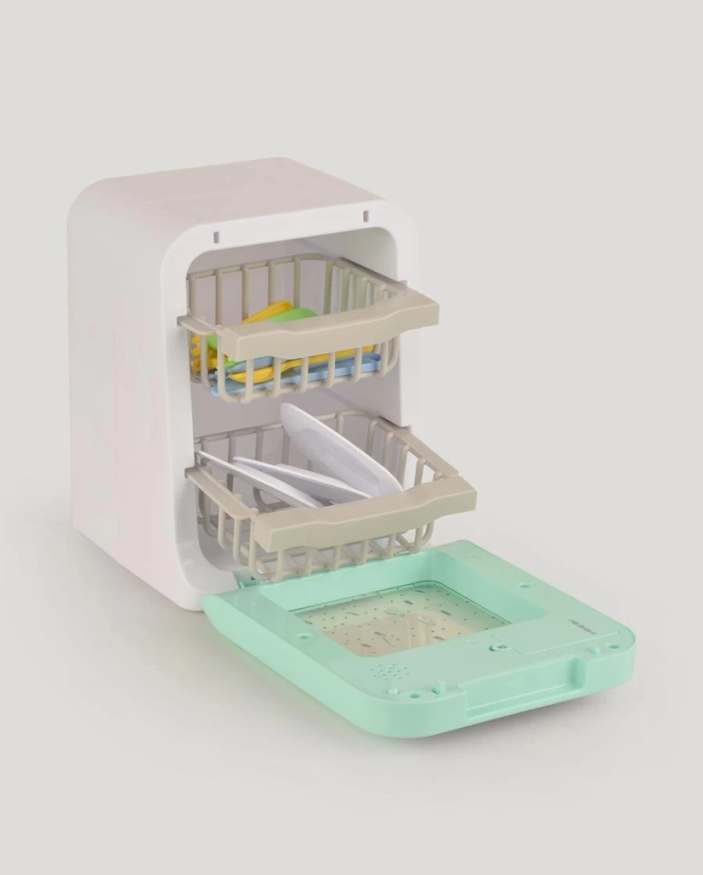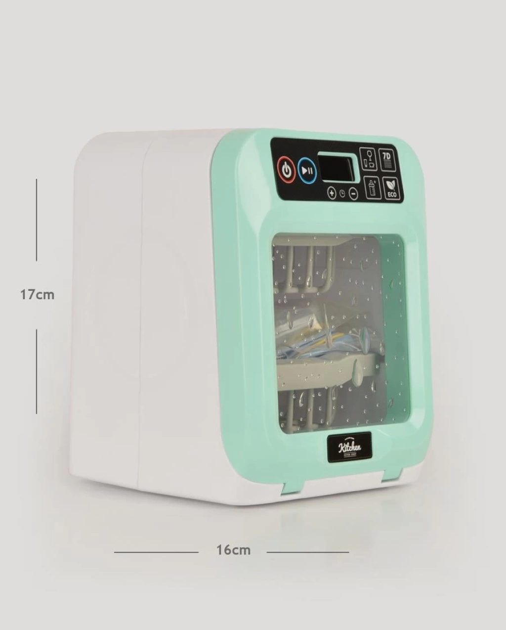 4 yıkama programı ve ayarlanabilir süre fonksiyonları ile bu oyuncağı çocuğunuz çok sevecek. Gerçekçi bulaşık makinesi işlevleri ve seslerine sahip olan bu oyuncak 3 tabak, bıçak, kaşık ve çatal içerir.