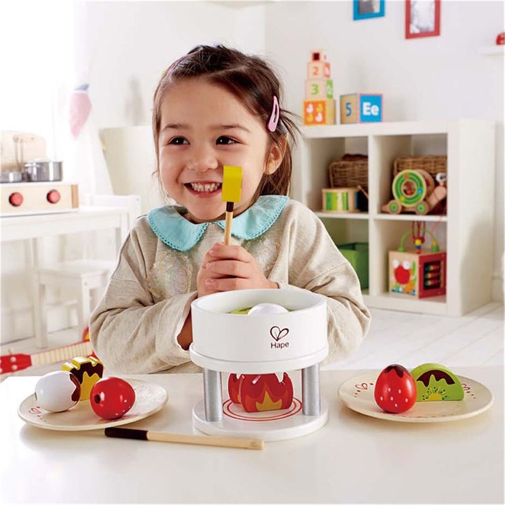 Fondü çömleğini yak, daha sonra dilimlenmiş meyve ve bisküvileri çikolata sosunun içine kat, karıştır ve mini tabaklarla servis et!